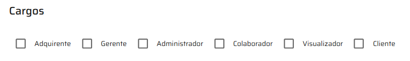 Os Cargos e Permissões são os recursos que liberam o usuário a ações especificas na ferramenta, abaixo, detalhamos a finalidade de cada um:
