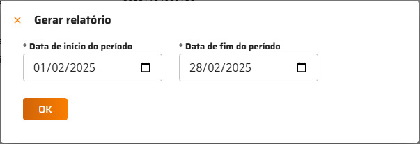 - Selecione o período que deseja gerar o relatório e clique em OK.