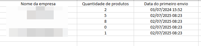 - O relatório irá listar a quantidade de produtos enviados no período do relatório e a data do primeiro envio do Importador, ou seja, da ativação do cadastro do Importador no Catálogo de Produtos.