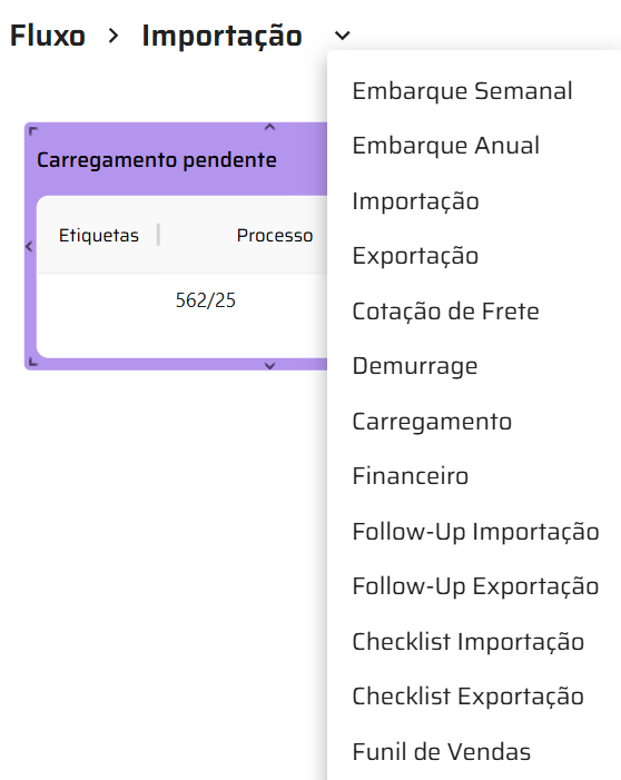 Cada fluxo possui a opção padrão de exportar os itens exibidos na tela, permitindo gerar relatórios completos conforme os filtros e visualizações ativas.Exportar Arquivos a partir de um Card