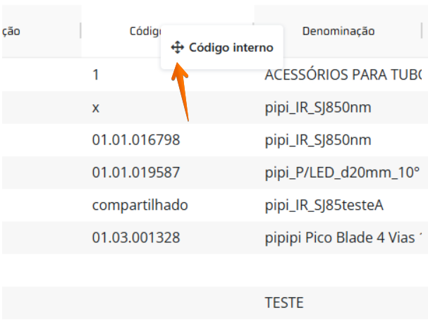 Para ajustar a ordem das colunas desejadas é preciso segurar a coluna e arrastá-la para a posição preferível.