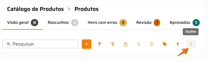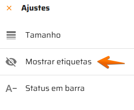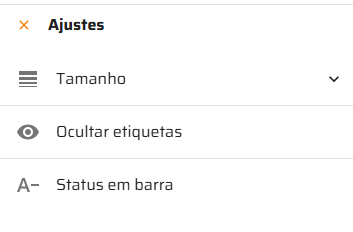Opções: Alterar tamanho da linha, exibir/ocultar etiquetas e alterar formato da coluna Status