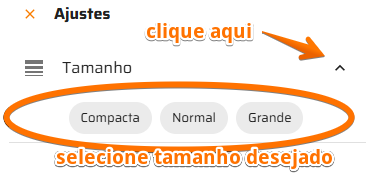 Para alterar o tamanho das linhas, siga as instruções da imagem abaixo:
