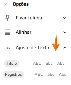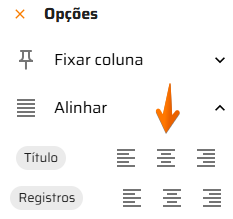 Para fixar, alinhar ou ajustar o texto da coluna, clique primeiramente em .