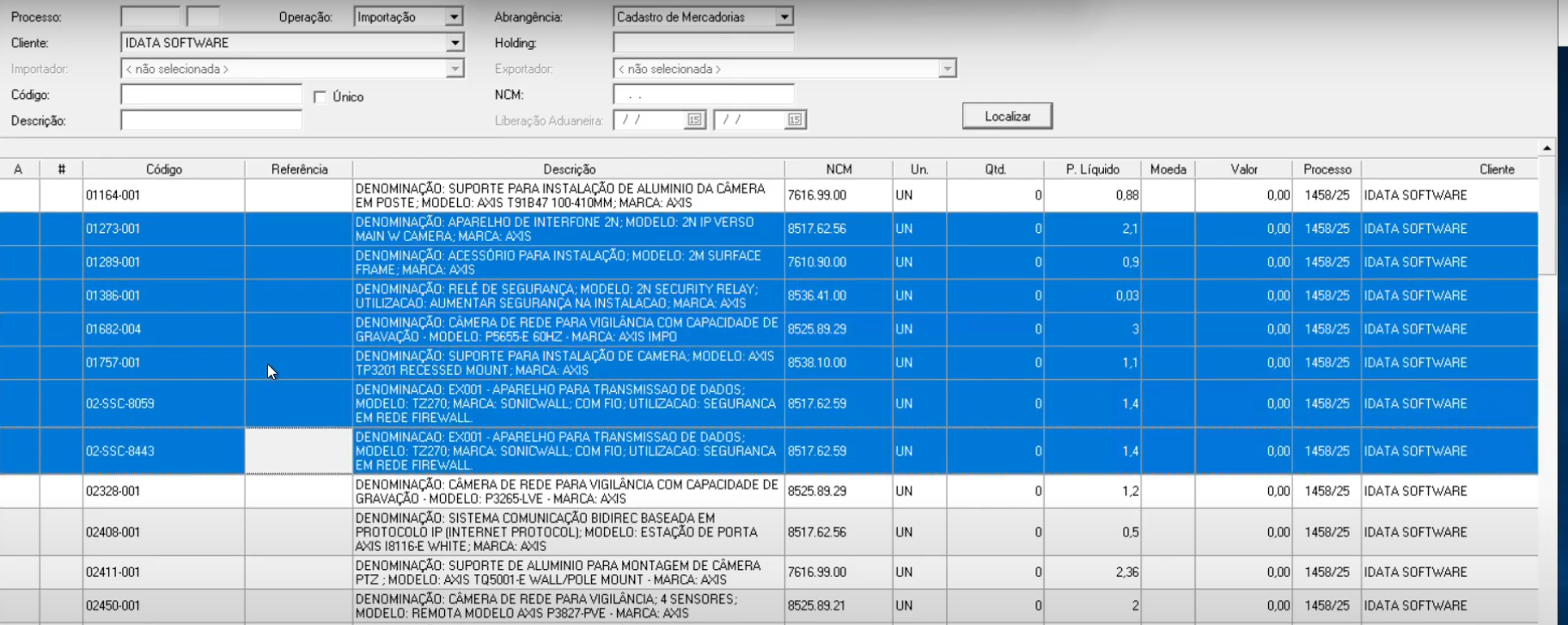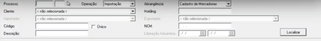 Dica: Caso queira pesquisar apenas os produtos que tiveram importação em um período específico, utilize a abrangência de processo com o período de Liberação Aduaneira.