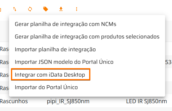 - Os produtos selecionados no iData Desktop aparecerão em tela e você poderá selecionar quais deseja efetivamente importar clicando no seguinte botão: