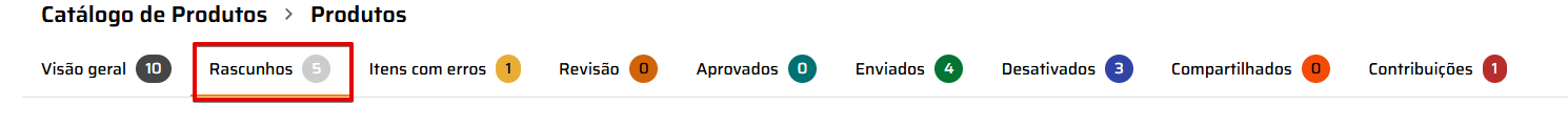 Os produtos importados aparecerão em seu Catálogo de Produto na aba Rascunhos.