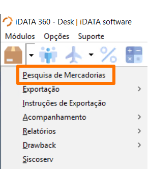 - Clique em Pesquisa de Mercadorias no iData Dekstop.