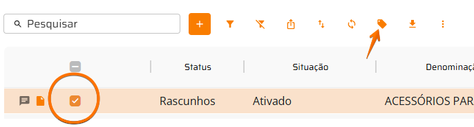 Para etiquetar um produto, é necessário selecioná-lo primeiro.