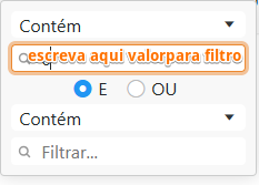 Escreva valor para filtro com condição escolhida.