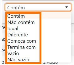 Selecione condição de filtro dentre as disponíveis