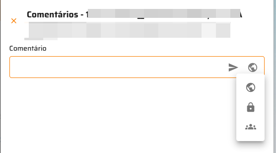 Para comentar em um produto, é necessário clicar no ícone , digitar o comentário desejado e então determinar o público que poderá visualizar o comentário.