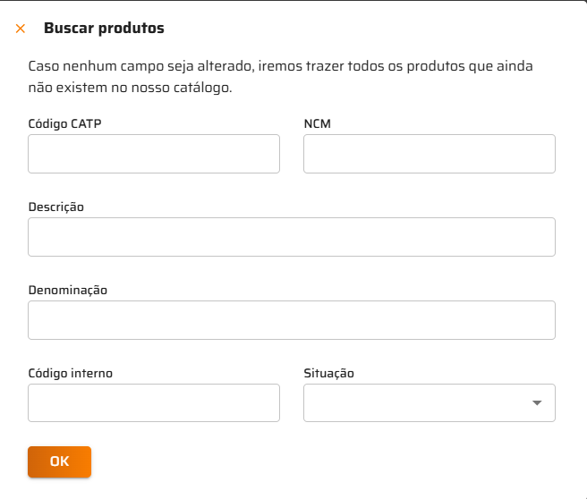Não preencher nenhum campo, caso deseje buscar todos os produtos disponíveis.