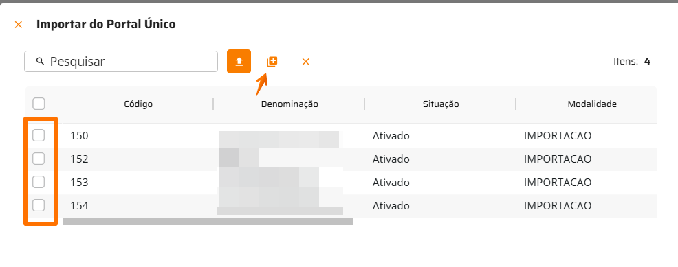 Os produtos cadastrados no Portal Único serão listados na tela e ficarão disponíveis para importação.