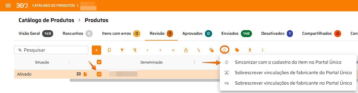Sincroniza os dados do produto entre o Portal Único e o 360.