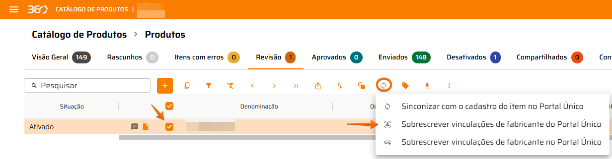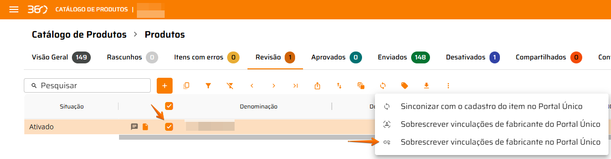 4. Sobrescrever vinculações de fabricante no Portal Único